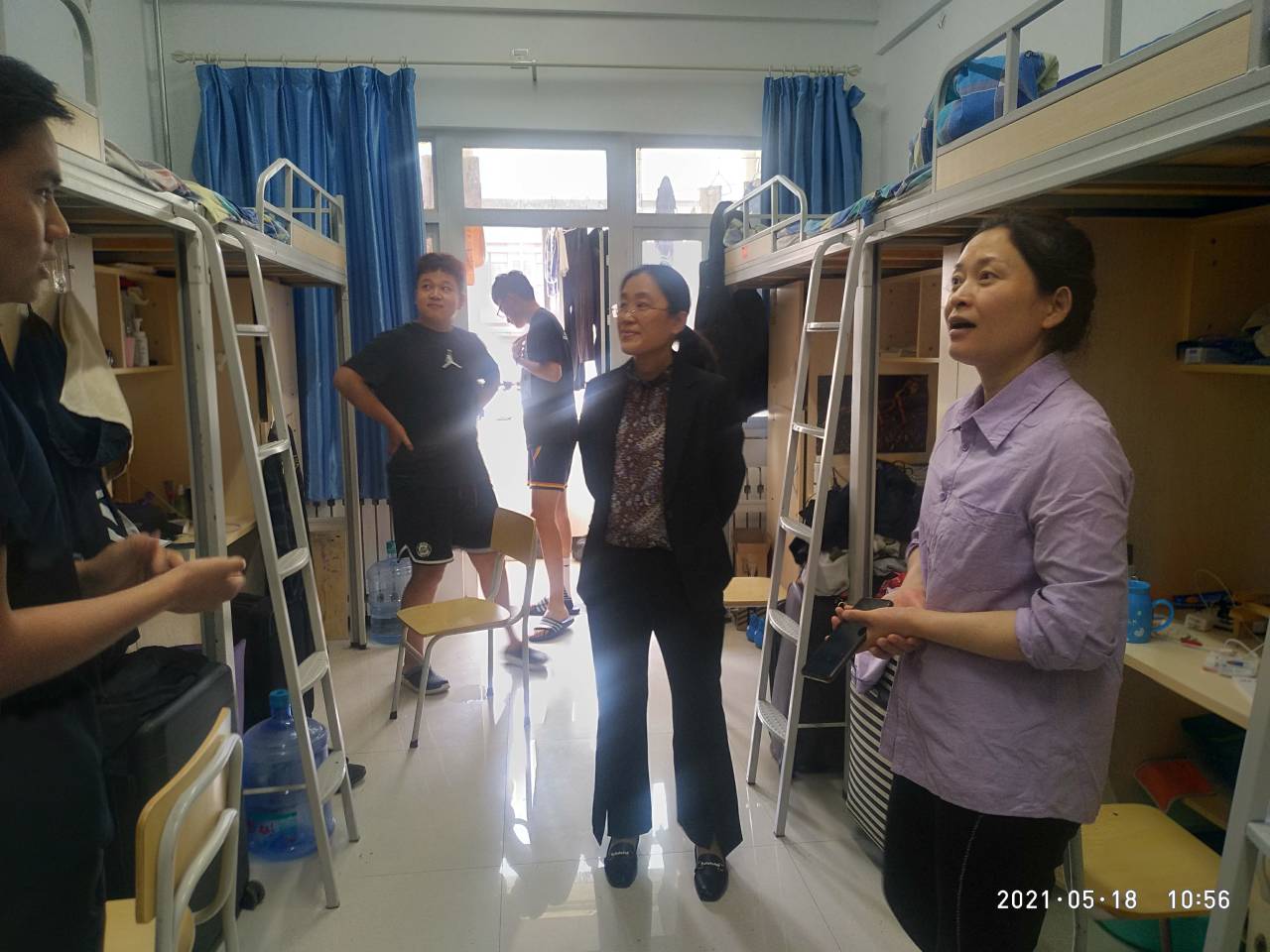 在检查过程中,徐春堂书记和辅导员老师与毕业生进行谈话,了解学生们的思想动态,询问毕业生的毕业去向及生活状况,排查并解决了毕业生遇到的困难和问题。