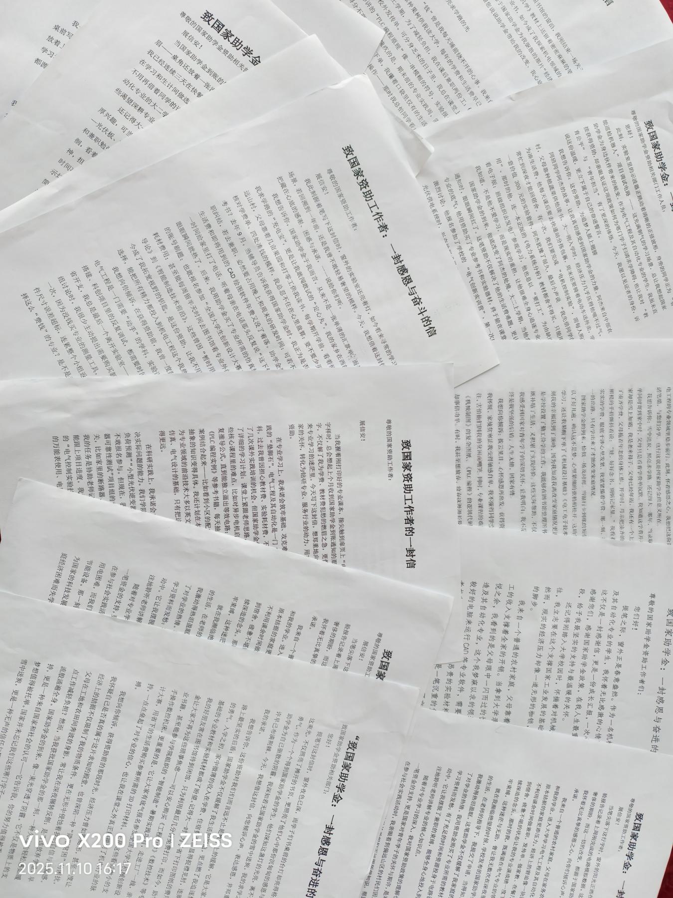 此次活动中,受助学子们用真挚的笔触表达了内心的感激之情。他们在文章中展望未来,将个人理想与专业所学紧密结合,立下了回馈社会、报效祖国的具体行动誓言,生动践行了“受助思源、获奖思进”的宝贵理念。本次征文比赛将组织专业评委,从主题契合度、情感真实性、思想深刻性及文稿感染力等多个维度进行综合评定,评选结果将于近期公布。