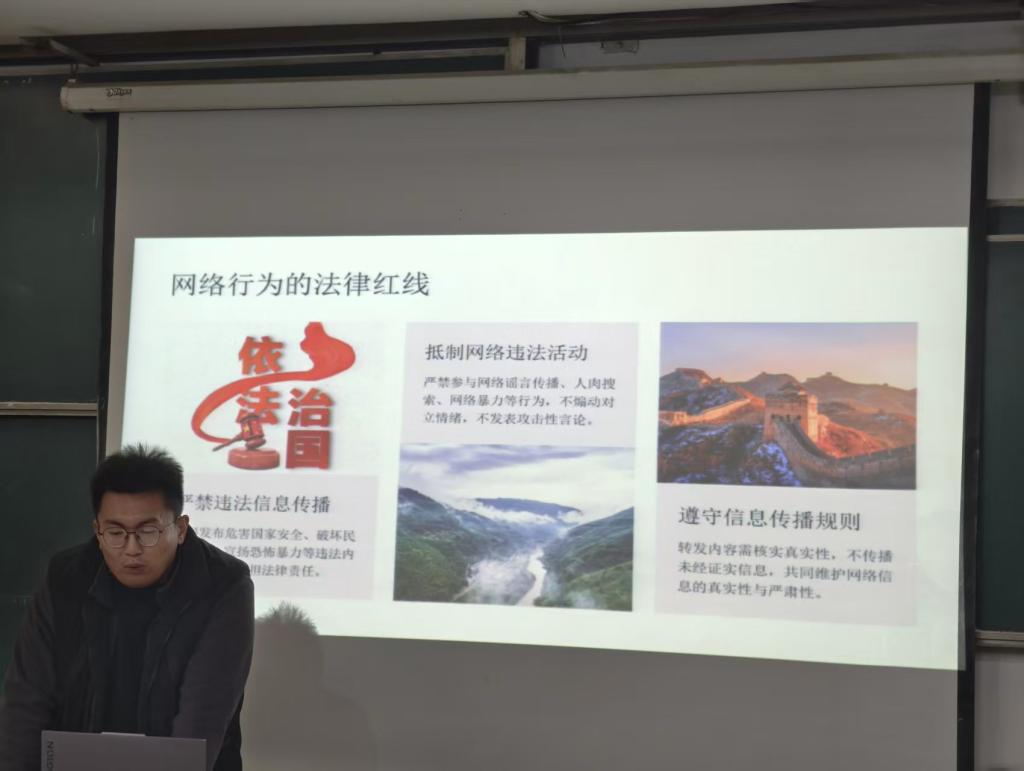 班会上,辅导员结合典型案例深入解读法律法规红线,强调网络并非法外之地,要严守法律底线,恪守公序良俗。针对学生群体在社交平台的创作与传播行为,辅导员指出,学生在网络平台发布的内容,严禁传播虚假信息、恶意攻击他人、泄露个人或校园涉密信息,严禁发布违背公序良俗、损害集体荣誉的言论或内容。提醒学生要维护群体公信力,全面体现当代大学生积极向上的精神风貌,遇可疑情况及时向英国上市公司365保卫处或公安机关求助,增强学生应急处理能力。