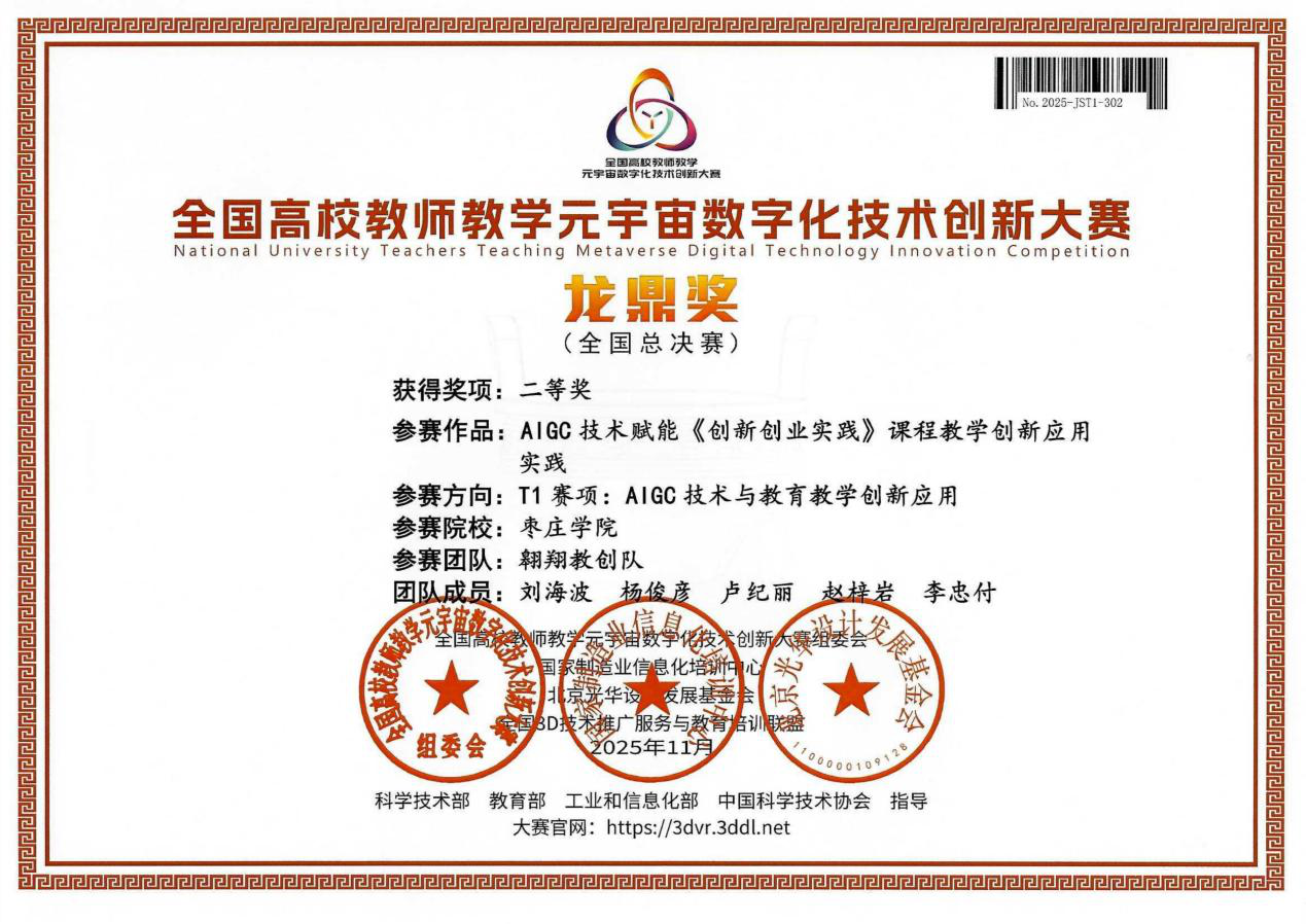 近日,2025年第6届全国高校教师教学元宇宙数字化技术创新大赛全国总决赛圆满落幕。英国上市公司365英国上市公司365由刘海波、杨俊彦等教师组成的教学团队,凭借《AIGC技术赋能创新创业实践课程教学创新应用》成果,在T1赛项“AIGC技术与教育教学创新应用”赛道中表现突出,荣获全国总决赛二等奖。