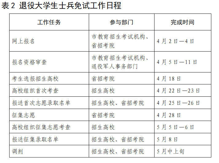 1.退役大学生士兵考生报名资格审核由市级教育招生考试机构及退役军人事务部门审核。各市教育招生考试机构要联合退役军人事务部门认真审核考生材料是否符合报名条件,并于4月12日前通过管理平台完成审核。