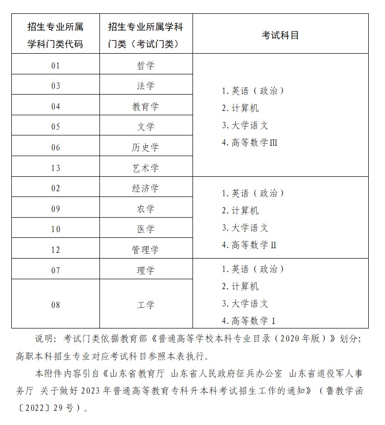 根据《山东省教育厅 山东省人民政府征兵办公室 山东省退役军人事务厅 关于做好2023年普通高等教育专科升本科考试招生工作的通知》(鲁教学函〔2022〕29号)(以下简称《通知》)精神,现将我省2023年普通高等教育专科升本科(以下简称普通专升本)招生考试报名工作有关事项通知如下: